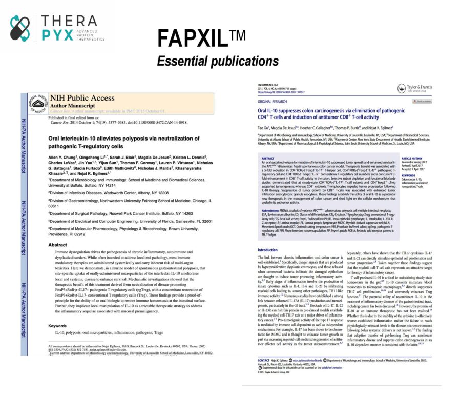 Our research in rodents shows that FAPXIL activity involves the neutralization of specific disease-promoting immune cells in the intestinal lamina propria. This approach was found to affect not only intestinal polyposis, but also the development of colon tumors via specific anti-tumor immune cells in the inflamed colon.